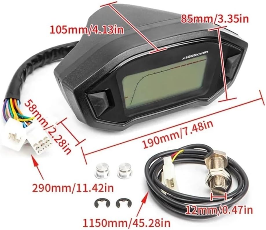 Before purchasing, please make sure the product size is suitable for your motorcycle vehicleInstrument Cluster with Adjustable Colors For Motorcycle Tachometer Engine Status Fuel Level Odometer Time TachometerOdometer: Iron+ABSInput voltage:12VBody color: BlackFunction: motorcycle odometer with high sensitivity and unrivaled accuracy.