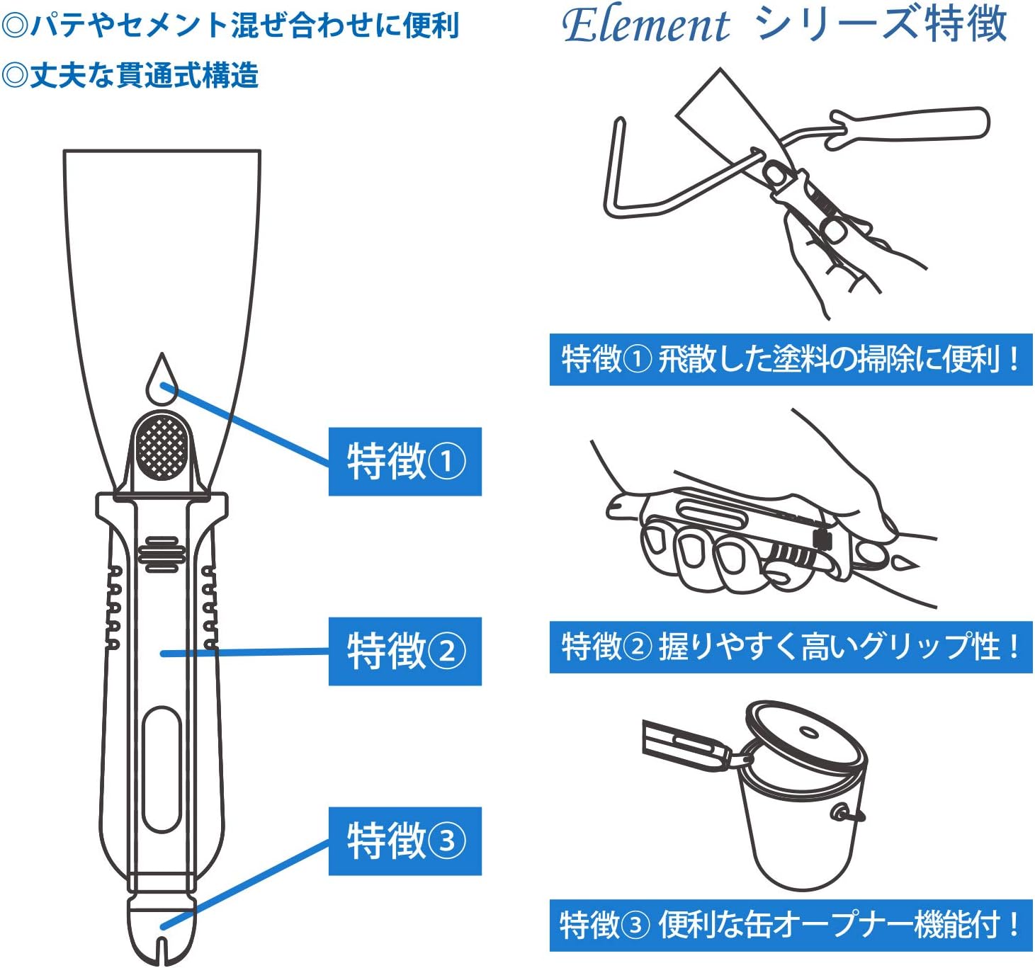 Features: ● Durable penetrating construction. This multi-gold spatula has a high grip, can opener, and all the tools necessary for painting jobs such as mixing and painting and stretching. [Precautions] This product was developed for mixing and painting of materials. Do not use for anything other than the intended purpose. Do not use with a hammer. Keep out of reach of small children.