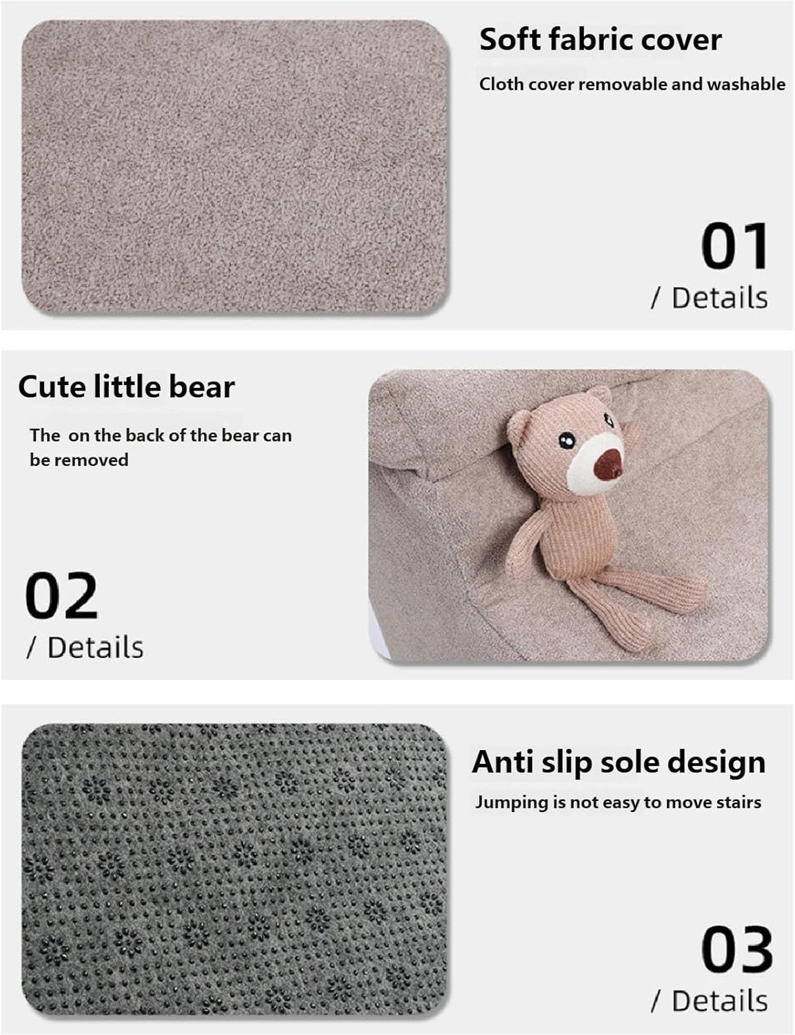 Multifunctional Pet Step for Climbing Aid and Rest Platform Space Saving Stable Light weight for Apartments Features: This adorable pet stair a soft, plush fabric surfaces that gently cushions your pet ' s paws and joints, providing essential comfortable for sensitive or elderly pets while solving issues with traditional hard stairs Designed with sturdy yet light weight materials like linen and polyester, it features a portable, for easy repositioning to collocation different furniture heights Ideal for dogs with joint sensitivities or senior pets, as well as owners seeking durability dog training supply for a healthier home Perfect for apartments or family homes, it enables pets to safely access sofas, beds, or use it as a cozy resting platform, enhancing small space efficiency Its charm, multifunctional pet ladder design not only supports pet mobility but also adds decorative to your living space, creating a delightful pet accessory for everyday use Specifications: Dimension: 37x60x35cm / 14.57×23.62×13.78in Component: polyester, linen Package Includes: 1pc Soft Plush Pet Stairs Note: 1.Please allow 1-2cm errors due to manual measurement, making sure that you will not mind before order 2.Due to the differences between different monitors, the picture may not reflect the actual color