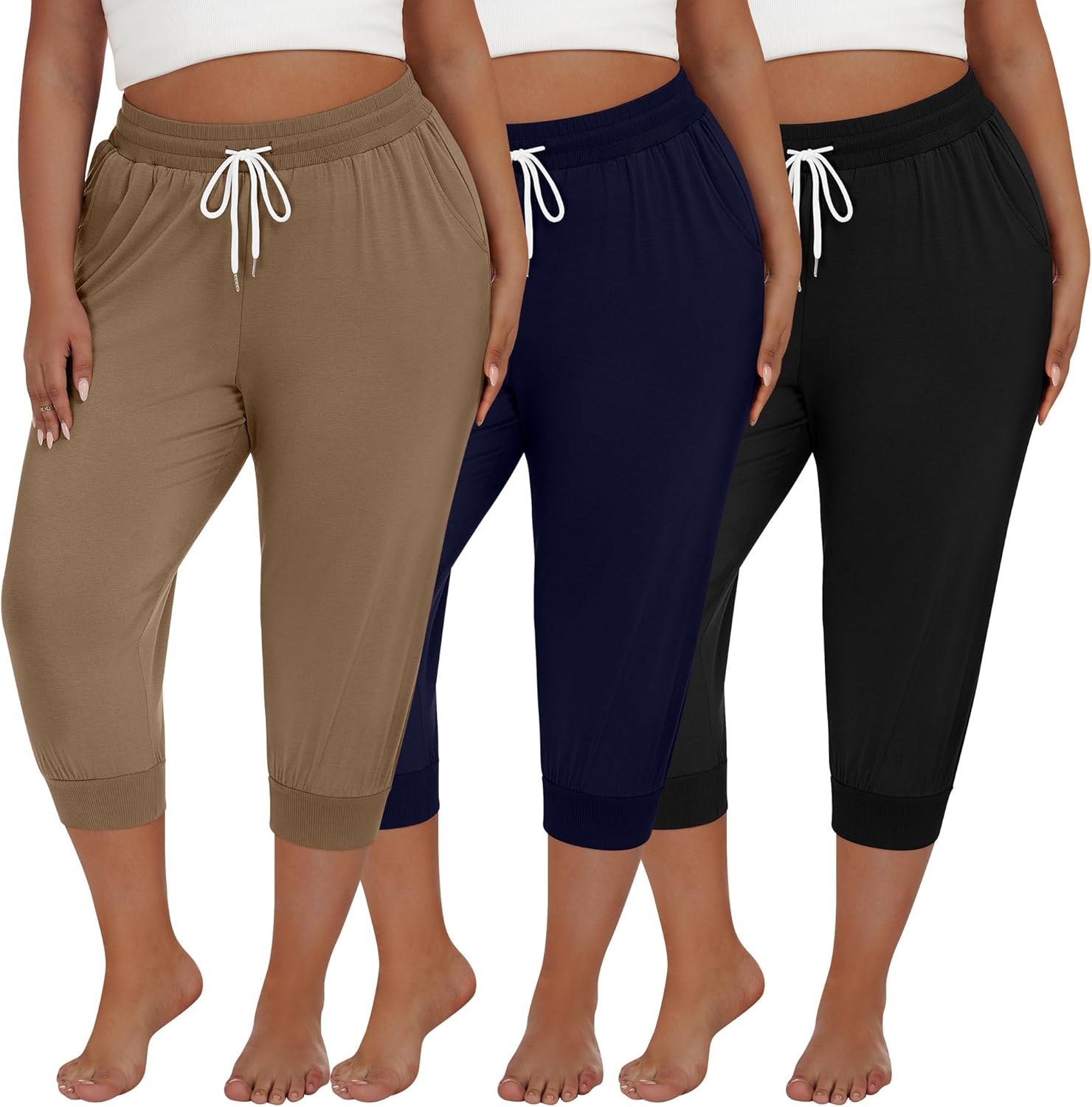 Features: Multiple outfits: As plus size women's pants, they have wide leg design and soft fabric. They can be worn as pajamas, yoga pants, sweatpants, jogger pants, yoga pants casual wear and home pants. Easy care: Washer and dryer safe. Recommend to wash in cold water and tumble dry low or line dry. Specifications: Material: 90% Cotton, 10% Spandex Package Includes: 3 x Plus size capris pants for women Notes: Manual measurement, please allow slight errors on size. The color may exist a slight difference due to different screen displays. Please do not wash our products with other clothes, and bleaching is not allowed