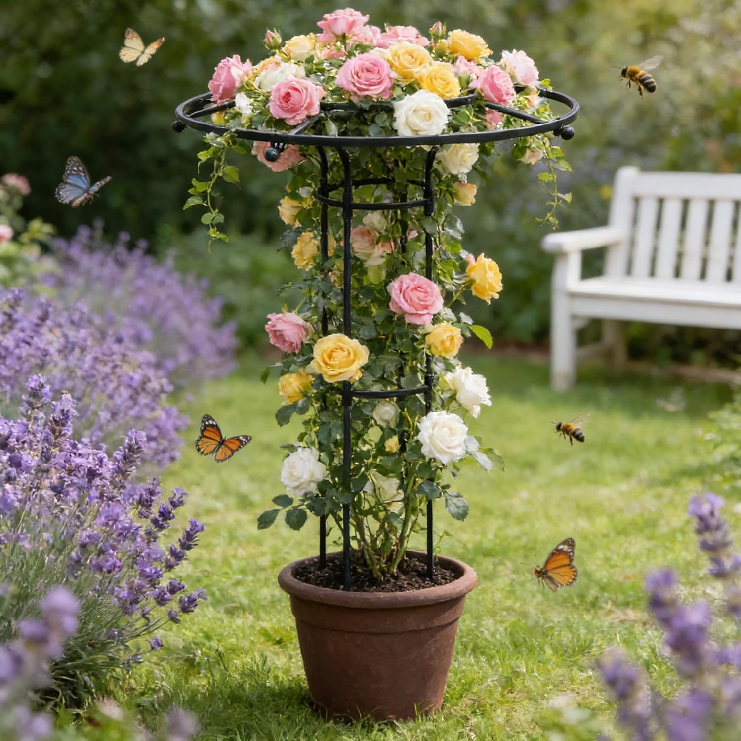 Description: Add vertical elegance and practical support to your gardening space with our Stackable Garden Obelisk Trellis. This versatile plant support cage is designed to help your climbing plants grow while adding a charming structure to your landscape. Crafted from sturdy metal with a plastic coating, this trellis makes reliable support for your vines, roses, and flowering climbers. The protective coating helps safeguard the frame from the elements. The innovative stackable tiers allow you to customize the height. Start with a lower profile for young plants and simply add more sections as they grow, making this a long-lasting gardening companion. Ideal for small-space gardens, patios, or raised beds, this obelisk trellis is easy to position. The pointed legs press firmly into soil or container mix for stability. In just moments, you can have a beautiful plant tower ready for morning glories, clematis, pea plants, or miniature tomatoes. Transform your garden into a layered, retreat. This functional and decorative trellis helps guide plant growth upward, promoting better air circulation and making it easier to enjoy your blooms and harvests. Features:. -Color: Black. -Material: Plastic-coated iron pipe + plastic ring. -Size: 90 cm/35.4 inch. Insert it into the soil at a depth of more than 15 centimeters. Note:Manual measurement, please allow slight errors on size.The colors may exist slight difference due to different screens. Package Including 1 * Garden Trellis