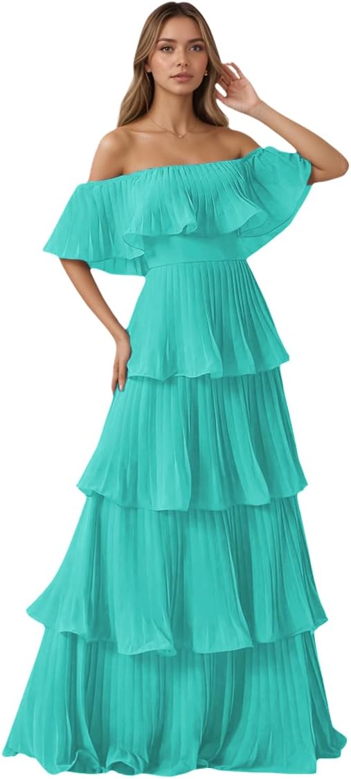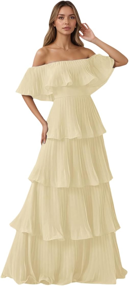 | Pattern | Off Shoulder Chiffon Bridesmaid Dress With Tiered |
