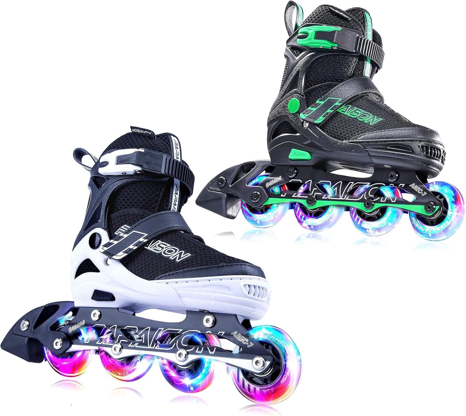PAPAISON White Black Medium Inline Skates with Green Medium Inline Skates
