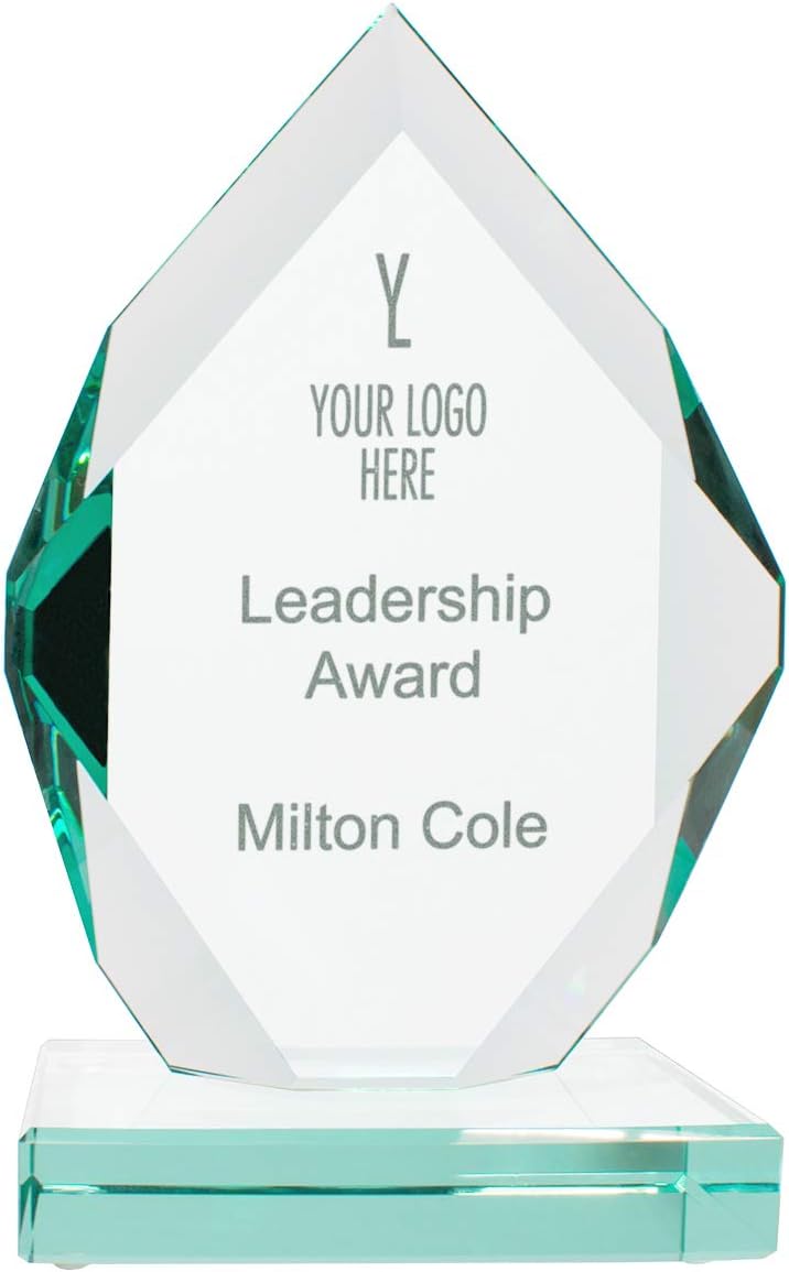 Sometimes the best way to say thank you is with the help of a unique, beautiful award. The Royal Diamond Glass Awards are available in a wide variety of sizes, all with a satisfying, heavy weight. We use a laser to strike the desired text or image into the back of the glass; the result is a beautiful, frosted-white finish on a clear, polished glass face. You may also choose a color printed ink option, which will appear on the surface of the crystal face and will last for approximately 2 years. The award will arrive already assembled. Any recipient will love showing off their accomplishments with this elegant award plaque, making it an ideal gift to present to any coworker, manager, or employee at a company banquet or other professional event. These will also pair well with sports trophies at the end-of-season team banquet and will make each teammate feel important. Customize the text with a special title, like "MVP" or "Most Improved," to offer an additional personal touch and to celebrate each unique accomplishment. Plus, with the option to upload a photo, the crystal plaque can be customized with a company logo, team mascot, and more. No matter who you're getting this plaque for, they are sure to love it.