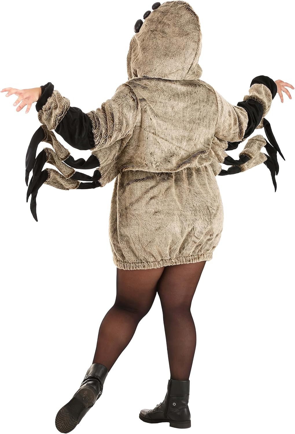 The Fun Costumes Cozy Tarantula Spider Costume Women's Plus Size You may think a cuddly spider is an oxymoron but slip on this Women's Cozy Tarantula Costume and be enlightened! Artfully and carefully crafted in our costume design studios, this exclusive look offers quality construction and superb details to help you bug out at your next costume party. Featuring a zip-up jacket, the awesome outfit is as comfy to wear as it is creepy to encounter. The furry brown hoodie zips up the front and features 6 sewn-on limbs. These connect via translucent wire beneath your arms, which make up the last two spider "legs." Plush eyes attached to the hood perfect your look and prepare you to creep out arachnophobes all night long. Costume Details: Main body: 72% acrylic, 28% polyester; Faux fur black fabric: 100% polyester Separating front zipper Elastic waistband 3 stuffed legs sewn into each side seam, connected to sleeve & each other by clear cord Hood has 6 sewn on stuffed eyes Size Chart: 1X: Chest=46 1/2"; Sleeve Length=25"; Waist=37" - 48"; Jacket Length=35" 2X: Chest=50 1/2"; Sleeve Length=26"; Waist=41" - 52"; Jacket Length=35 1/2" 3X: Chest=54 1/2"; Sleeve Length=26"; Waist=45" - 56"; Jacket Length=36" About Us: Fun Costumes are exclusively made by us and begin with passion, teamwork, and industry expertise decades in the making. Our products are proof that with the right people even a simple idea can grow into something incredible. We started in a small garage in Minnesota, providing costumes to our local community, and now we're creating costumes for people all around the world. - Hooded Jacket