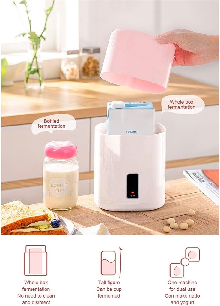 It can be fermented in a whole box of milk. The taste of DIY yogurt is up to you to taste a cup of yogurt of your own taste. Food-grade contact with high borosilicate glass liner can safely make yogurt. Constant temperature heating, promote uniform fermentation of yogurt, smooth and delicate taste, fresh and mellow. Homemade yogurt is rich in active beneficial and is easier to absorb than milk. It can be freely matched with fresh fruits and nuts, which is nutritious and delicious. Rated voltage: 220V Rated frequency: 50Hz Rated power: 15W Product size: 145*112*190mm Package List: 1 x Yogurt Maker 1*Glass cup Note: 1. Please allow 1?2cm error due to manual measurement. Thanks for your understanding. 2. Monitors are not calibrated same, item color displayed in photos may be showing slightly different from the real object. One key switch four functions: yogurt, kimchi, natto, rice wine.