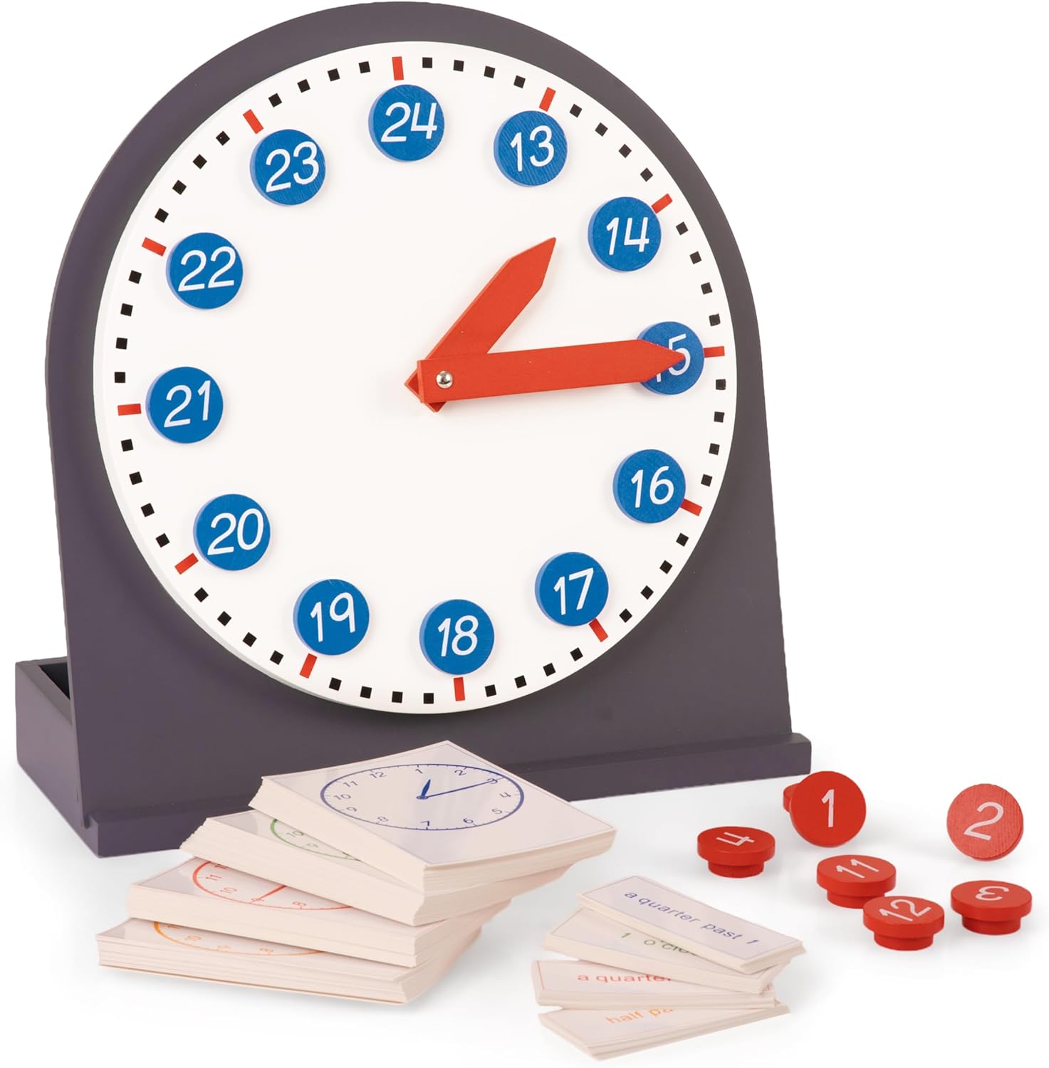 Unlock the World of Time with Our Authentic Montessori Learning Clock Give your child the gift of understanding time with our Premium Montessori Interactive Learning Clock. Crafted from solid beechwood and designed according to authentic Montessori principles, this is more than a toy—it’s a complete sensory and mathematical material that makes abstract concepts tangible and engaging for young minds. Why Our Montessori Clock Stands Out: · Authentic Montessori Methodology: Dr. Maria Montessori believed that "the hands are the instruments of man’s intelligence." This clock embodies that principle, allowing children to ‘work’ with time physically, leading to deep, self-driven learning and concentration. · Uncompromising Quality & Safety: We use only premium, solid beechwood for unmatched durability and a beautiful, natural aesthetic. Every edge is smoothly sanded and finished with non-toxic, child-safe materials, meeting rigorous safety standards (ASTM F963, CPSIA). Its substantial 3.85-lb weight signifies lasting quality. · A Complete Educational System: Includes the 12-inch wooden clock, movable hour and minute hands, a full set of 12 removable numbers, and a detachable stand. It’s a standalone resource perfect for sequential learning: from number recognition and order, to understanding “o’clock,” and eventually mastering minutes. Develops Key Educational Foundations: This teaching aid is a powerhouse for holistic development: ·Mathematics: Introduces number sequencing, the cyclical nature of time, and early arithmetic. ·Fine Motor Skills & Hand-Eye Coordination: Precise placement of numbers and adjustment of hands builds dexterity. ·Cognitive & Problem-Solving Skills: Encourages logical thinking and understanding cause-and-effect. ·Independence & Confidence: The self-correcting feature allows children to discover and learn from errors autonomously, building immense self-esteem. Ideal For a Wide Range of Settings & Users: ·Montessori Schools & Homeschools: A core material for the math and practical life curriculum. ·Preschool & Kindergarten Classrooms: A durable, engaging classroom resource for group or individual work. ·Special Education & Therapeutic Settings: Its tactile, visual, and structured nature is ideal for occupational therapy and supporting children with autism, ADHD, or sensory processing needs. ·Intergenerational Learning: A superb cognitive aid for memory care, used in senior centers, adult day cares, or at home with grandparents to support orientation and fine motor maintenance. Technical Specifications: ·Material: Solid Natural Beechwood ·Dimensions: 30 cm / 12 inches in diameter. Package: 34 x 33 x 8 cm. ·Weight: 1.75 kg / 3.85 lbs ·Age Recommendation: 3-8+ years Invest in a timeless educational tool that delivers lasting value. Choose the Premium Montessori Learning Clock—where quality, pedagogy, and joyful discovery meet.