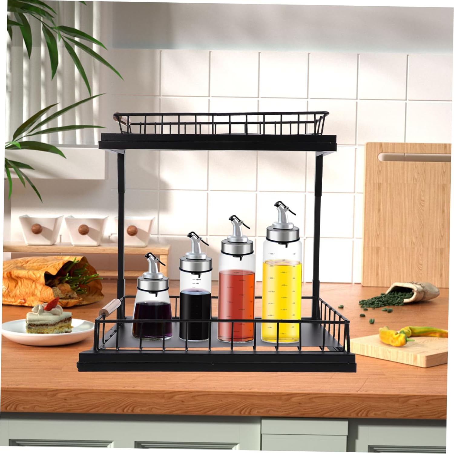 Package Include 1 x Under Sink Organizer Characteristics -Material:Carbon steel Kitchen Cabinet Organizer - Color: Black Under Sink Organizer - Size: 38.00X36.50X28.00cm/14.93X14.34X11.00in Kitchen Storage Rack - The storage rack can be pulled out smoothly, very convenient and for cabinet use Sink Storage Rack Holder. - kitchen condiment storage helper. It is definitely a storage accessory for the family Sliding Storage Organizer. - The two-layer design that it has large capacity, can store spice jars, kitchen ware and so on Kitchen Storage Holder. - The material is sturdy and , which is wear resistance and for the long time use Under Sink Shelves. - Humanized design for convenient use and space, the storage rack can very Double-layer Spice Organizer.Goods InformationUnder Sink Storage Rack A helper for kitchen.Sliding Storage Organizer want to have a kitchen storage rack to store your seasoning bottles and other items? Then, our storage rack is carefully prepared for you.Under Sink Organizer Enough capacity to store many seasoning bottles and kitchen supplies