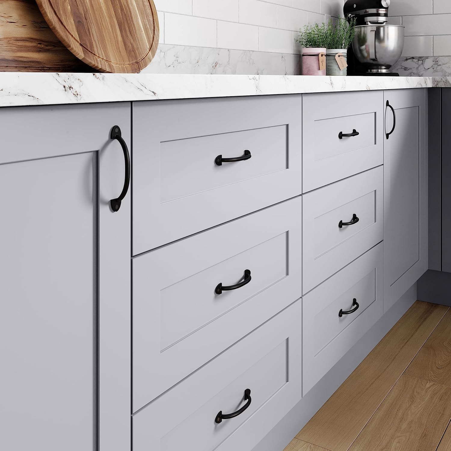 You don't have to sacrifice style for quality and durability with Iron Traditional handle. Casual with a hint of industrial charm, this handle features a well-proportioned touchpoint that is easy to grasp with robust yet refined backplates on either side. This style pairs well with farmhouse interiors, but is so universally appealing that they also complement industrial, minimalist, rustic, arts & crafts, vintage, traditional, and even modern spaces. Made of solid cast iron, these robust handles are easy to grip and can be mounted vertically or horizontally, so you can easily customize your home and showcase your personal style. Instantly add a sophisticated feel to built-in cabinets and drawers in kitchens, bathrooms, and bedrooms or to bedside tables, dressers, vanity drawers, entertainment centers, bedroom closets, and other furniture around your home. Perfect uses for DIY projects like furniture upcycling, woodworking, resin art, and so much more. Not only does the powder-coated black finish offer a complementary option for most interior color schemes - it also provides durable, rust resistant protection for outdoor use on backyard gates and shed doors. Installation hardware is included with these front-mounting handles, so you can add refined functionality wherever you need it with just a few screw turns.