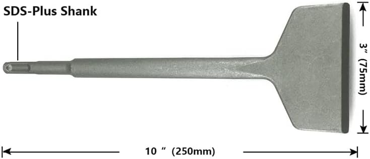 Shank: standard SDS-Plus shank, shank diameter: 3/8inch(10mm)Material: hardened material, drop forged body with a sandblasted finishCompact, durable, high removal rate and comfortable for operation, this tool is widely used by DIYers, home owners and professional tradesmen for tiles, thinset, mortar and other adhesive removing projectscolor:SilverMaterial:steelsize:Length: 10inches (250mm), Width: 3 inches (75mm)Package includes:1 x tile removal toolOnly the above package content, other products are not included.Note: Light shooting and different displays may cause the color of the item in the picture a little different from the real thing. The measurement allowed error is +/- 1-3cm.Item specifics:Origin: Mainland China