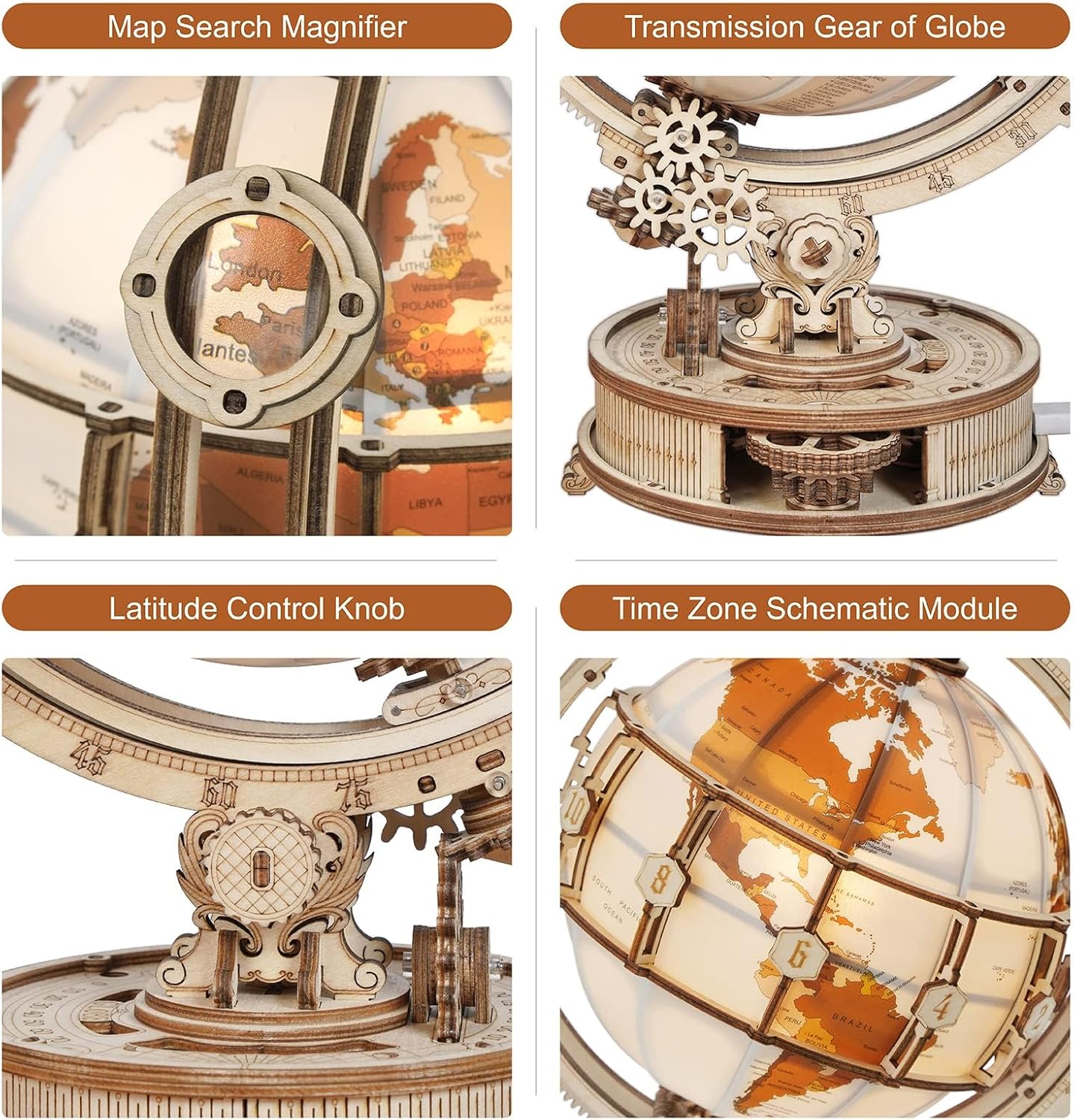 ROBOTIME ST003 Luminous Globe - Wooden 3D Puzzles for Adults with LED Light - Globe Model Building Kit for Teens & Adults