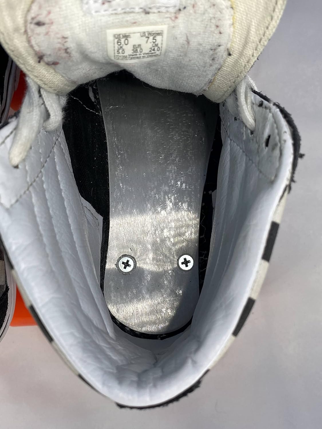 Turning your favorite pair of sneakers into practical and safe roller skates may seem impossible but we have the secret: our premium kit! Easy to use and very durable, these metal insert for roller skates allow you to transform your favorite pair of Vans, Converse, or other sneakers into your dream skates. What makes this product special? These metal inserts come with 4 machine screws and nuts that will make the installation process easy and quick. The metal inserts have a heavy-duty design and are made entirely out of aluminum. They come in a wide range of sizes suitable for men and women alike. Some features to keep in mind about our product: DIY roller skate aluminum inserts; Compatible with Vans, Converse, and other high-top sneaker brands; Includes machine screws and nuts; Heavy-duty aluminum alloy; Thick and strong design; No bolt cutting or sewing needed; Can be used with a wide range of drift plates; Heavy-duty design; Easy installation. Turn your favorite pair of high top sneakers into a premium pair of roller skates with our amazing skate inserts!