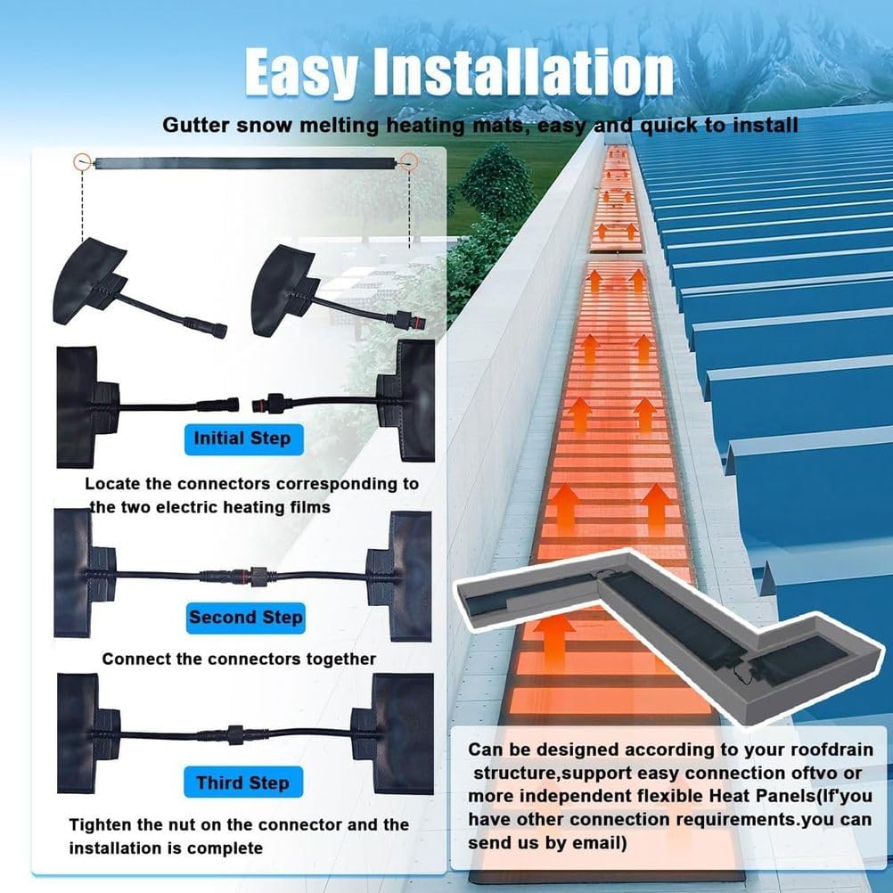 Discover the ultimate solution for winter maintenance with our Snow Melting Mats, designed to enhance your home’s safety and efficiency. Using cutting-edge graphene heating technology, these mats provide an energy-efficient way to prevent ice dams and protect your roofs and gutters from potential damage. Installation is a breeze, and their universal compatibility means they fit all types of gutters and downspouts, making them ideal for year-round outdoor pipe protection.✦ Key Benefits:1. Advanced graphene technology ensures fast and even snow melting while minimizing energy use.2. Effectively prevents ice dams, safeguarding your roof and gutter systems from costly repairs.3. Flexible design allows for multiple mats to be connected and conveniently rolled up for off-season storage.4. IPX7 waterproof rating and durable PVC construction ensure long-lasting performance.5. Low energy consumption means reduced electricity costs and peace of mind against roof damage.6. Versatile compatibility with metal and plastic gutters, making them suitable for any roof type.✦ Product Details:* Name: Heated Snow Melting Mat* Material: PVC* Dimensions/Power Ratings:12*75cm/4.7*29.5in - 25W12*150cm/4.7*59in - 50W12*180cm/4.7*70.8in - 60W12*300cm/4.7*118.1in - 100W12*360cm/4.7*141.7in - 120W12*500cm/4.7*196.8in - 170W12*610cm/4.7*240.1in - 208W12*760cm/4.7*299.2in - 255W* Compatibility: Works with most types of gutters (metal and plastic) and eaves.✦ What’s Included:Outdoor Heating Mat × 1