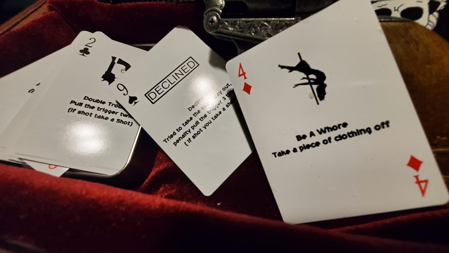 RR Card game one of 4 ways to play! draw a card and follow instructions or take a chance and put the pop cap gun to your head!