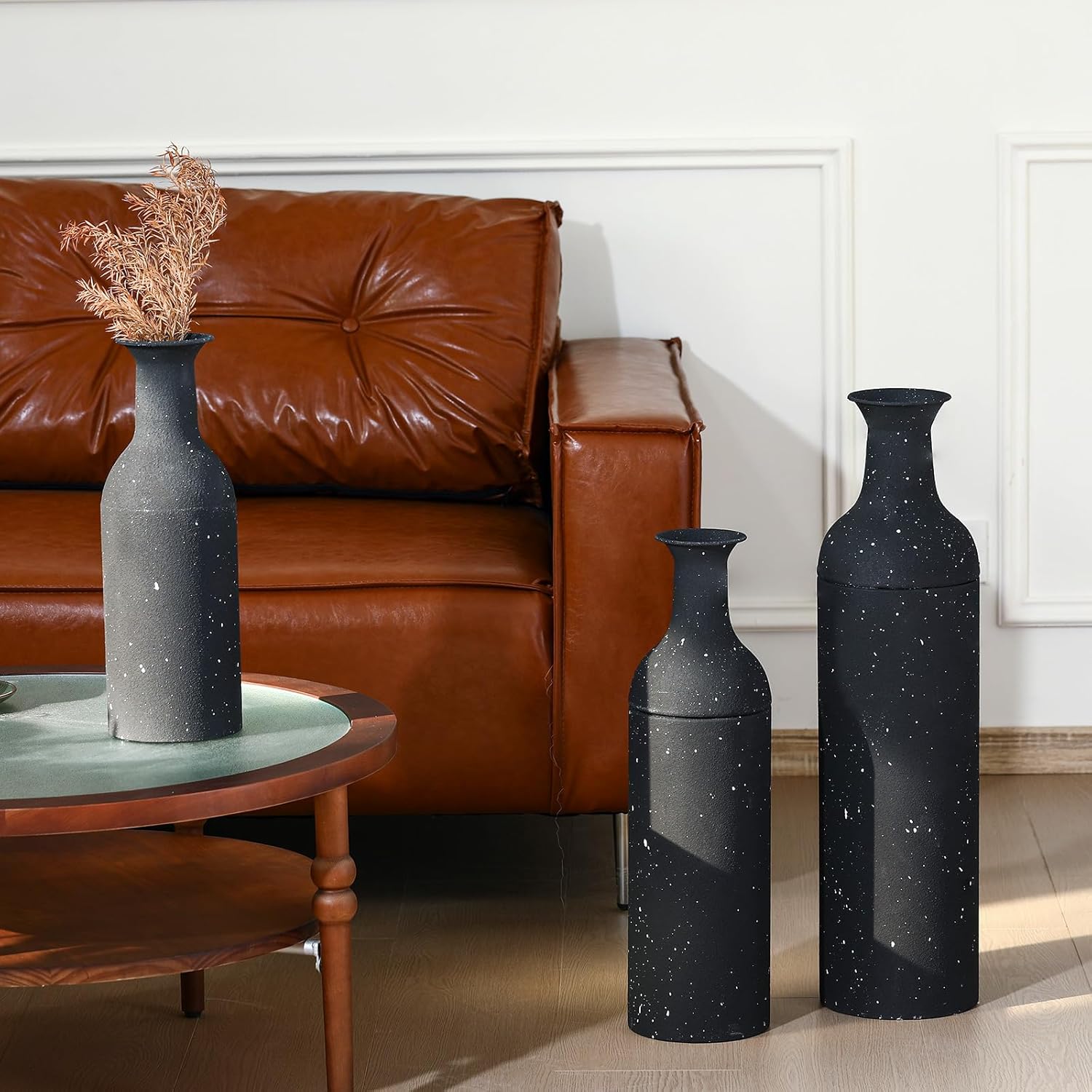 Features: The characteristic black surface creates a rustic style for interior decoration. This decoration vase set adds a lot of characteristics and charm to your home. The metal vase can be inserted with your favorite plants or flowers, you can decorate the interior environment of the home to create your own style. Specifications: Material: metal Color: black Size: 27/20/16 inches Package includes: 3 x large black vase Notes: Manual measurement, please allow slight errors on size. The color may exist a slight difference due to different screen displays.