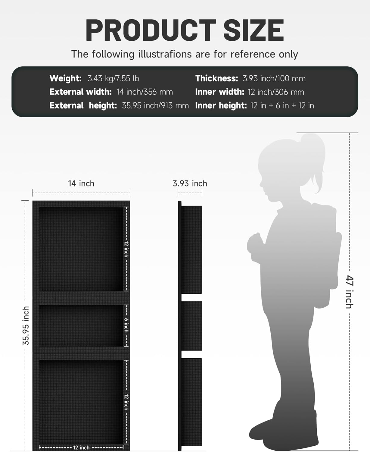 | Size | 14"W * 36"H (3-Layer) |
