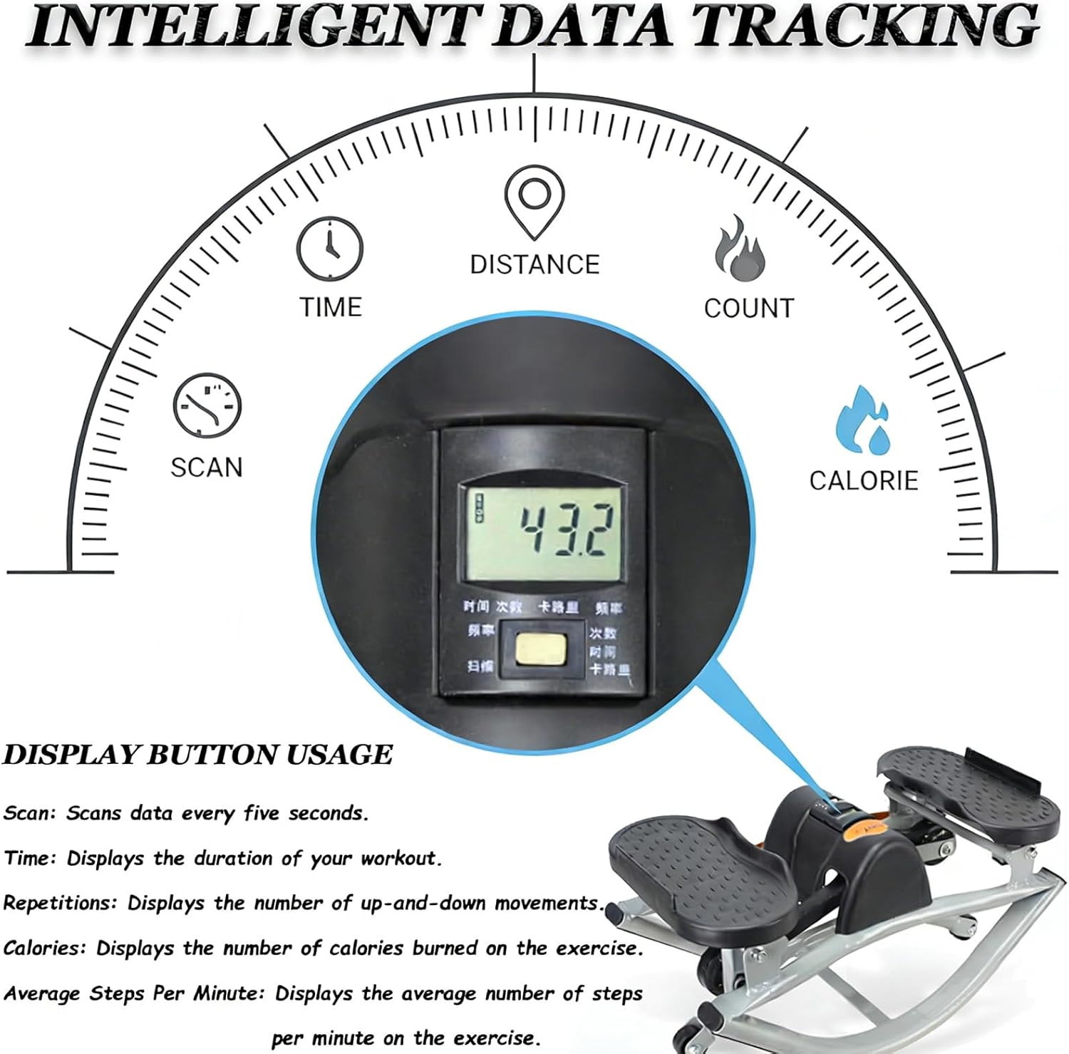 Product Overview: Lateral Swing Fitness StepperThis is a lightweight, foldable stepper with a space-saving design. It features a left and right lateral swing motion for low-impact indoor exercise at home or in the office.Key Features & Specifications:Exercise Type: Left and right lateral swingDisplay: LCD screen (shows Time, Steps, Calories)Construction: Steel frame with high-strength ABS pedalsDesign: Foldable for easy storageUsage: No assembly required, ready to use out of the boxHow to Use:Step onto one pedal until it contacts the floor, then step onto the other pedal with your opposite foot. Beginners are advised to position the stepper near a stable support. For added exercise variety, resistance bands (not included) can be used separately to complement upper body workouts.Important Notes:Manual measurement may have a slight variance.Product color may appear slightly different due to monitor settings.If you have any questions, please contact us. We are committed to providing assistance.