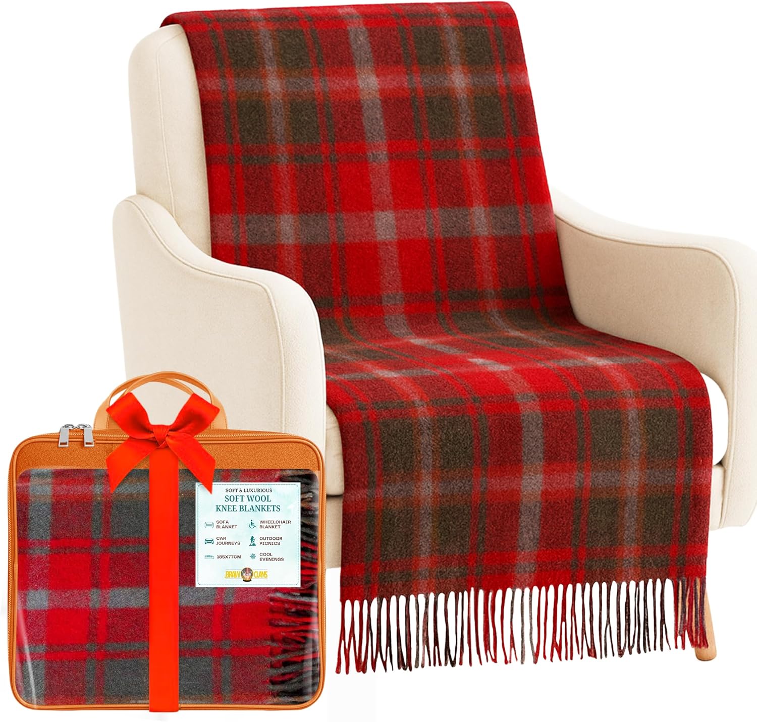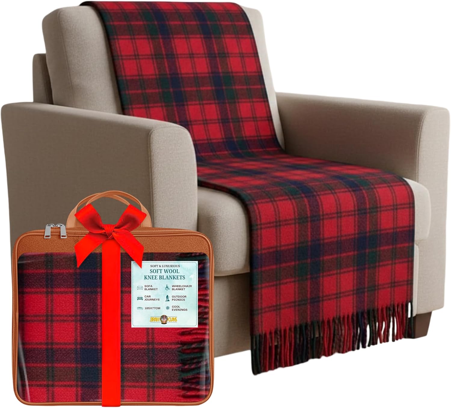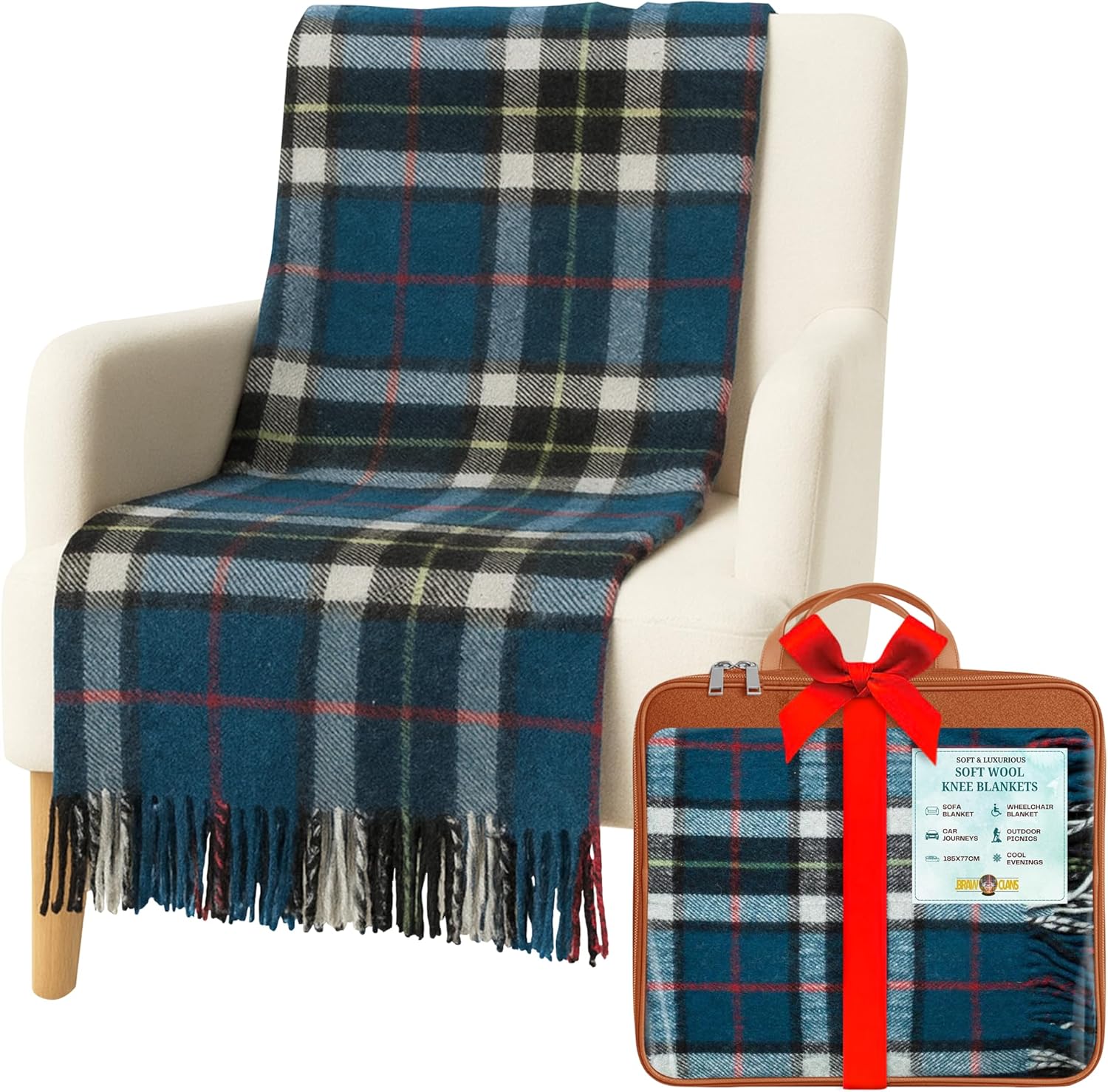 Experience timeless elegance and comfort with our Soft Wool Tartan Knee Blanket, inspired by authentic Scottish patterns. Measuring 185cm x 77cm, this versatile blanket is crafted from a high-quality blend of 70% wool and 30% mixed fibres, offering exceptional warmth, breathability, and softness. Its non-itchy and hypoallergenic properties make it suitable for all ages, while the classic fringed edges add a touch of sophistication. Whether used as a reading blanket, sofa blanket, or travel blanket, it’s perfect for home, car, or outdoor use. The lightweight design provides cozy warmth for cool evenings, making it ideal for elderly care, camping, or as a blanket for granddad or grandmom. A perfect gift for Mothers Day, Fathers Day, Christmas, or any special occasion, this wool knee rug blends heritage, style, and comfort - a must-have winter accessory for every home.Care instructions : Spot clean or hand wash cold with mild detergent. Do not wring or tumble dry. Lay flat to dry and store in a cool, dry place.