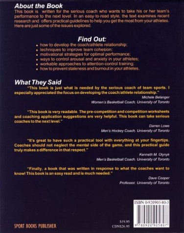 This book was written for the serious coach who wants to take his or her team's performance to the next level. In an easy-to-read style, the text examines recent research and offers practical guidelines to help coaches get the most from their athletes. Some of the issues explored include developing the coach/athlete relationship, improving team cohesion, controlling arousal and anxiety, implementing attention control training, and preventing staleness and burnout. Read more