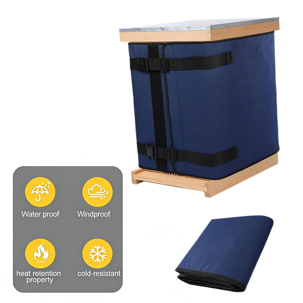 Feature:【Reliable and Durable】 Constructed from 600D Oxford cloth and insulation, the bee hive wrap effectively blocks rain, snow, wind, and UV rays, preventing moisture buildup, and sun damage. Offer superior waterproofing, windproofing, and warmth.【Winter Hive Protection】The high quality insulation design retains heat during cold winters, keeping the hive temperature stable and reducing the bees' energy consumption for thermoregulation.【Reusable Design】Made from durable, washable material, this wrap is reusable for multiple seasons—simply clean it with water and mild soap after use, and it will maintain its protective performance. Say goodbye to disposable wraps and save money in the long run.【Easy To Install】Equipped with heavy-duty Velcro straps and reinforced grommets, the beehive wrap can be installed in just 5 minutes without any tools, making it easy for beekeepers to perform routine maintenance and upkeep.【Universal Application】Specifically designed to fit both standard 8-frame and 10-frame beehives, eliminating the hassle of measuring and cutting irregular materials. The wrap's adjustable edge design ensures a snug fit around hive bodies, providing a cozy and insulated shelter for your bees during the winter months.Specification:Name: Bee Hive Winter CoverMaterial: 600D Oxford-clothColor: Gray, Black, BlueSize: 193*60cm/75.9*23.6inPackage Included:1 * Bee Hive Winter Cover