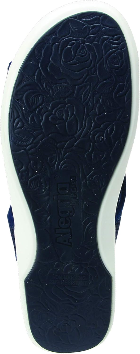 For questions or assistance regarding TRAQ™ technology, please call our Zappos TRAQ hotline, (888) 927-4103, between the hours of 4am-11pm PST.Enjoy comfort worthy of royalty in the cute Qeen from TRAQ®!Dream Fit neoprene upper with an open toe and sides.Easy pull-on style with stretch collar.Breathable leather linings.Features an antimicrobial footbed designed with a blend of cork, polyurethane and memory foam with arch support for all-day comfort.An ergonomically contoured footbed can help relieve stress in your feet, legs, hips, and back.Features an embedded smart Q-Chip pedometer that accurately counts each and every step.No charging required for the life of the shoe.Connect to the Alegria TRAQ™ smartphone app to personalize, easily set goals, and track progress on a daily, weekly and monthly basis.No GPS, just Bluetooth® connectivity.No need to take your phone or any other device when you go walking. TRAQ® will hold all your information for 7 days before you update the TRAQ App.The TRAQ® app allows you to engage with friends, family, and co-workers. You even create new friends with the TRAQ® Personalized Community!A dual-density, slip-resistant man-made outsole offers support and a sturdy stride.Imported.Measurements: Heel Height: 1 1⁄4 in Weight: 8 oz Platform Height: 3⁄4 inProduct measurements were taken using size 39 (US Women's 9-9.5), width Regular. Please note that measurements may vary by size.Weight of footwear is based on a single item, not a pair.