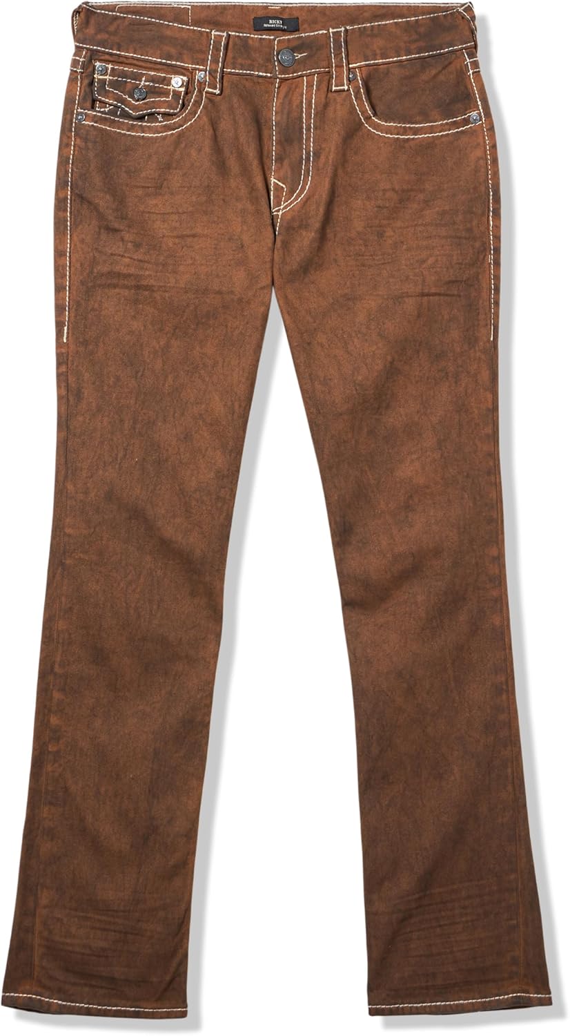 True Religion Ricky Big T Flap Jeans are a must-have for denim lovers who appreciate bold styling and a classic straight leg fit. Featuring the signature Big T contrast stitching and 1/2" flap back pockets with horseshoe embroidery, these jeans strike the perfect balance between premium craftsmanship and everyday comfort. The 34" inseam is ideal for taller frames, offering a full-length fit that pairs well with boots or sneakers. Straight leg fit with 34" inseam for a long, clean silhouette Big T contrast stitching for eye-catching True Religion detailing Flap back pockets with 1/2" detailing and embroidered horseshoe logos Zip fly with button closure and branded hardware Crafted from premium stretch denim for comfort and durabilityAttributes: Brand: True Religion Style Name: Ricky Big T Flap Jeans Fit: Straight Leg Inseam: 34 inches Flap Size: 1/2" flap back pockets Rise: Mid Rise Closure: Zip fly with button Pockets: 5-pocket styling Details: Big T contrast stitching, horseshoe embroidery, logo hardware Style Type: Premium Denim / Everyday Wear / Streetwear Care Instructions: Machine washable.