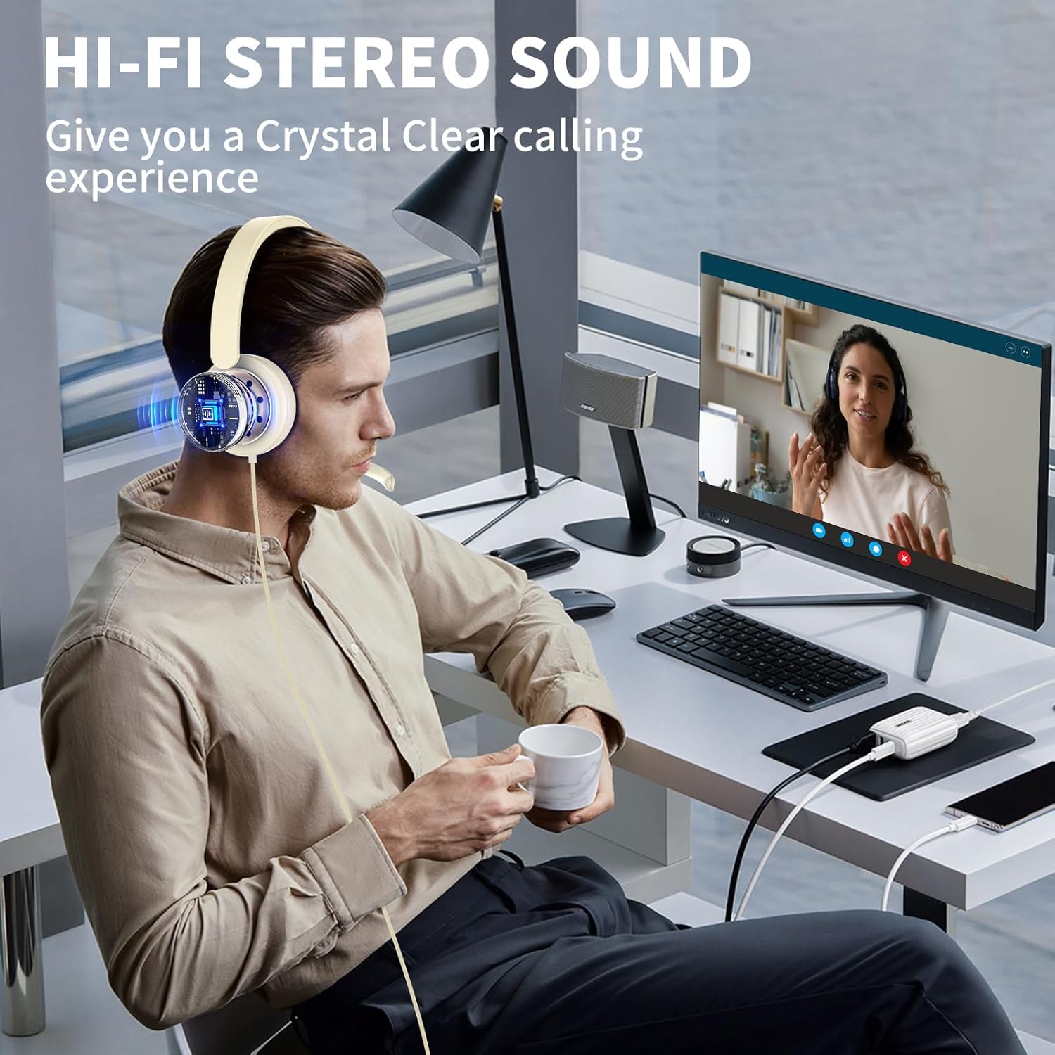 USB Headset with Microphone for PC, Computer Headset with Noise Canceling Microphone for PC Laptop, in Line Mute Controls, Wired Headset for Work from Home/Office/Call Center/Teams/Zoom