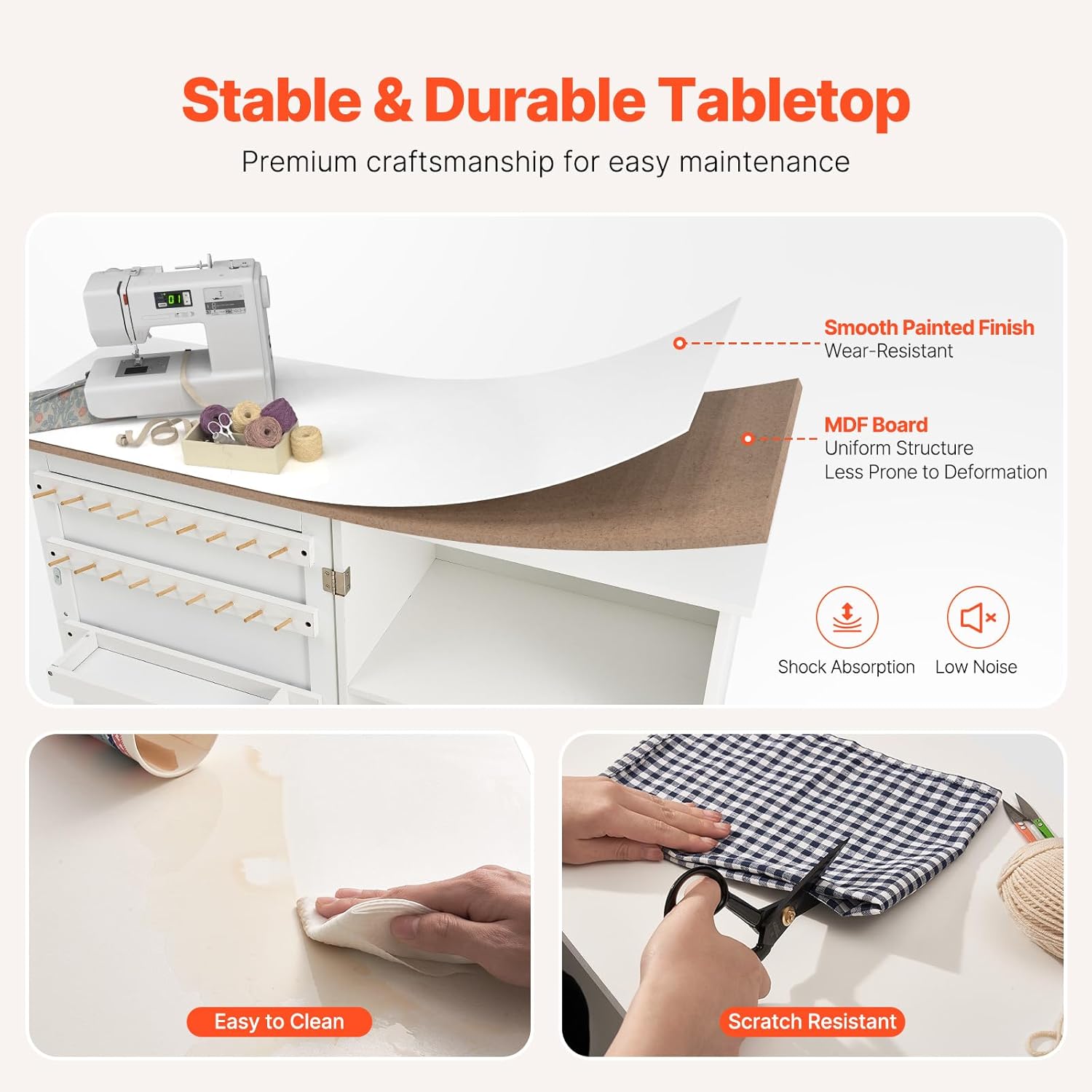 | Item Type Name | Multipurpose Sewing Machine Table with Compact Design, Wheels, Shelves, Storage Trays, Wooden Pegs, and Magnetic Doors, Sewing Desk Cabinet for Sewing Machine, White |