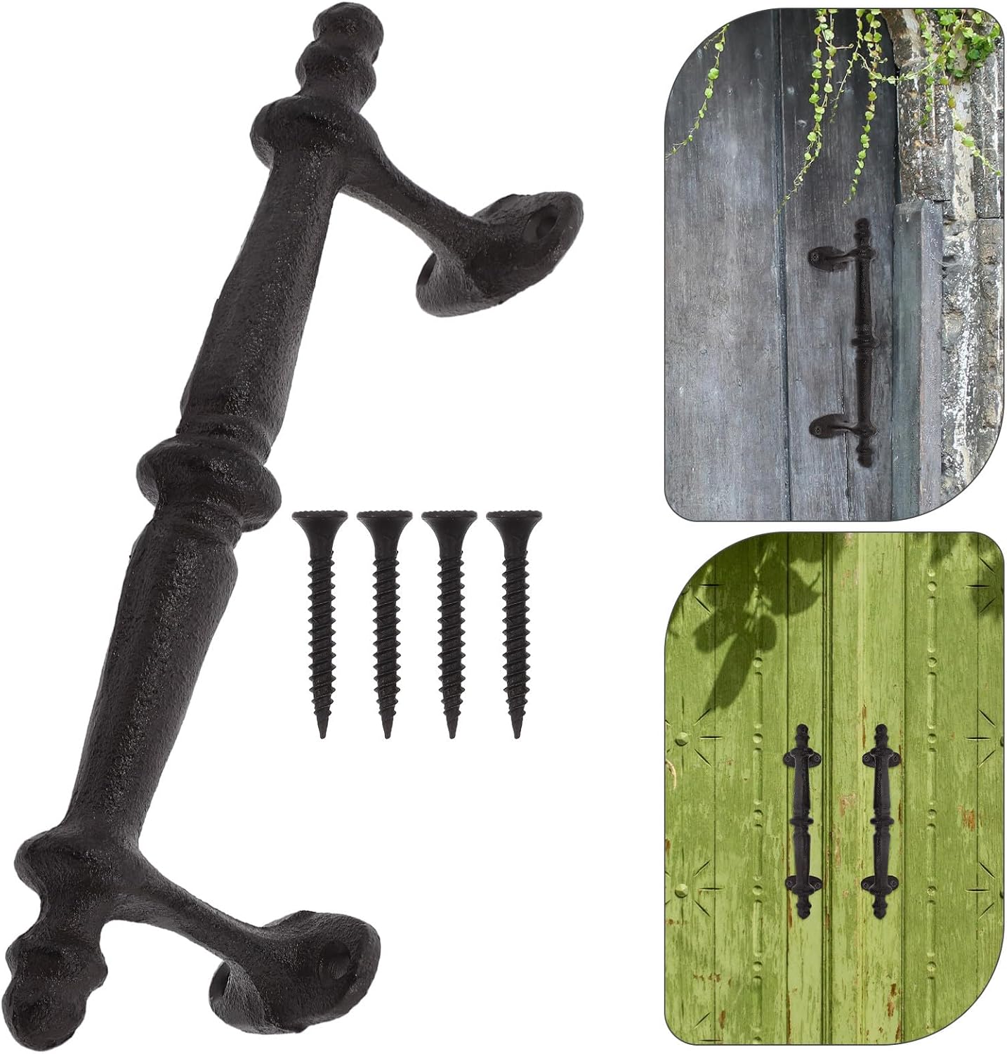 Package Include 1 x handle 4 x screws Characteristics -Product Info:Cast iron door handle -Easy to install: with a straightforward installation process, the handle can be easily mounted on various types of garden gates, ensuring a secure and attractive fit shed handles outdoor -Classic vintage appeal: the handle's classic vintage design brings a sense of nostalgia and elegance to your garden gate, enhancing its visual appeal outdoor door handle -Size:23.50X7.00X5.00cm/9.24X2.75X1.97in -Enhances gate appearance: its striking design and grand appearance make it a standout feature, elevating the look of your garden entrance gate handles -Material:Iron -Heavyduty material: made from heavyduty iron, this handle is exceptionally strong and great, ideal for outdoor environments. -Color:Coffee -Userfriendly design: the handle is designed for user comfort, with a smooth surface and ergonomic shape that make it easy to grip and use gate pull handleGoods Informationhardware handles Upgrade your wardrobe with our stylish knobs handles.pulls handles These knobs decorative pieces are ideal for adding a touch of elegance to your dresser or wardrobe doors.hardware knobs The easy-to-install design means you can quickly replace old knobs with these new, fashionable ones, giving your furniture a fresh, updated look without any hassle