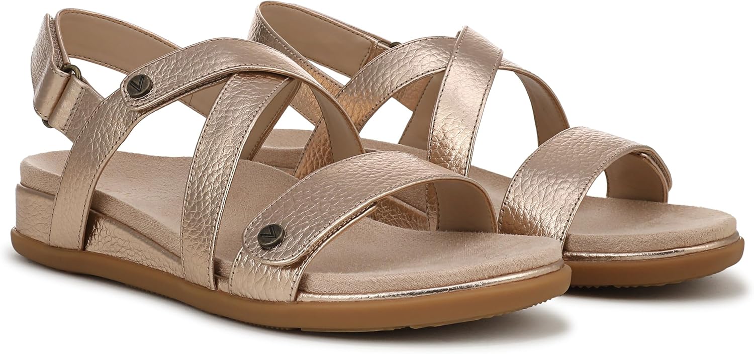 Embrace modern comfort with Cypress's ultra-wearable low platform height, adjustable buckle, and stretch goring for added flex. Designed with exclusive alignment technology to balance the whole you. Premium upper materials. Durable rubber outsole designed to withstand everyday wear. Lightweight, flexible EVA midsole absorbs shock, reducing stress on feet, ankles, and knees. Adjustable backstrap with buckle closure to ensure perfect comfort and fit. Built-in VIO MOTION Technology footbed featuring contoured arch support, with shock-absorbing cushioning, deep heel cup to provide stability, and forefoot flexibility. Vionic sandals' built-in orthotic is shown to be effective in helping to treat heel pain caused by plantar fasciitis or achilles tendonitis. For optimal comfort, wear your new Vionic shoes for a few hours to let your feet adapt. Within 1-2 weeks, you should experience full orthotic comfort and support. .75 inch(es) heel height. Imported.