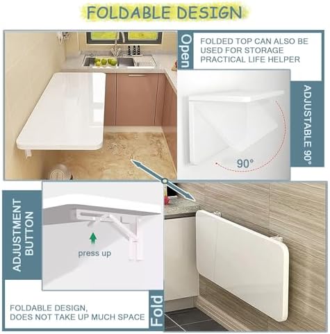 The wall-mounted folding table is made of wooden MDF boards and equipped with a triangular metal bracket, which is durable and has strong load-bearing performance. The personalized folding design greatly increases people's living space. You can place it in the kitchen, study, bedroom, bathroom, storage room, dining room or balcony according to your needs - it can be used as a dining table, children's desk, computer desk, etc. It can also be used as your own wall-mounted folding table, with convenient storage racks for key rings, towels, toothbrushes, mini potted plants and more. It only needs a clean wet cloth to clean and wipe, it is clean and beautiful, and it is easy to install.We can customize any size for you, trust us, we will solve any problems for you, we are committed to providing customers with the best products at the best prices.