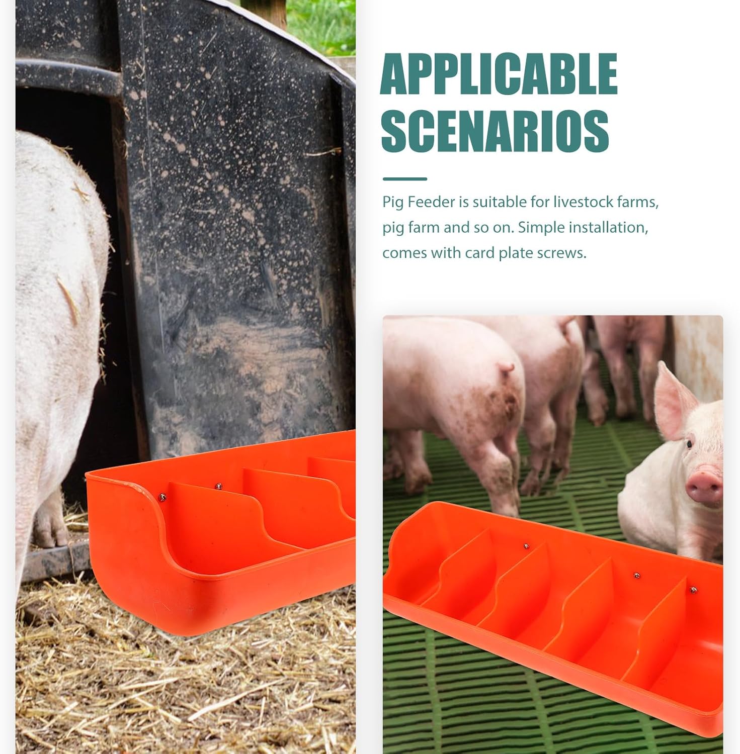 Package List 1 x Pig Feeder 2 x Brackets 4 x Screws Features -Size:56.00X16.00X13.00cm/22.01X6.29X5.11in -Product Info:Wall-mounted piglet trough -Material:Plastic -Color:Orange - Pig Feeder is made of good material, detailed workmanship ensure the practicality and durability. - The multi-slots Pig Feeder is suitable for domestic and commercial livestock farms, practical in use chicken trough feeder. - Unique shape design and multi-compartment design, suitable for most of the pigs to eating feeder rack. - The farmhouse Pig Feeder is perfect for a large variety of use cases, such as holding water or food wall feeder. - This heavy duty farm trough is durable enough to fit all of your needs, convenient and practical hanging trough feeder.Goods Descriptionhanging chicken feeder Manufactured with good and practical material, sturdy and practical, and this Pig Feeder is the for you.deer trough feeder Are you looking for a professional, yet pig trough? Are you in search of a sturdy, trustworthy pig trough at once? If so, look no further! Our professional Pig Feeder must meet your need