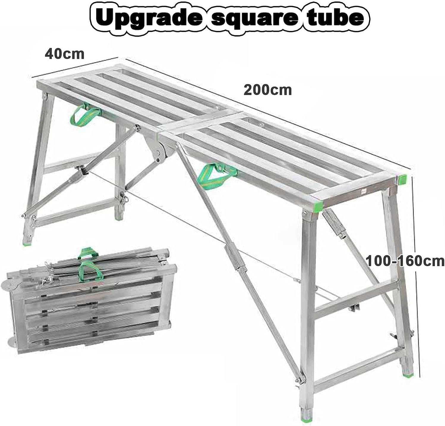 It can also help you access those just out of arm's reach items in the cupboard or used as a table for picnics. No Installation Is Required to Quickly Start Work and Save Time.Locking legs and non-slip feet are designed for added safety and stability; Specification: Name: Adjustable Work Platform Ladder Color: Silver Material: Galvanized steel pipe Loading Capacity: 400kg/880lbs Product use: home decoration DIY holding high things painting walls general maintenance work. Product Size: 140cm/4.59ft: 140cmx40cmx70~110cm 160cm/5.25ft: 160cmx40cmx80~120cm 180cm/5.9ft: 180cmx40cmx90~145cm 200cm/6.5ft: 200cmx40cmx100~160cm Package: 1x Folding Scaffolding After-sales Service: Reminder: Since the scaffold is welded by galvanized steel there will be welding marks. If you mind please do not place an order.