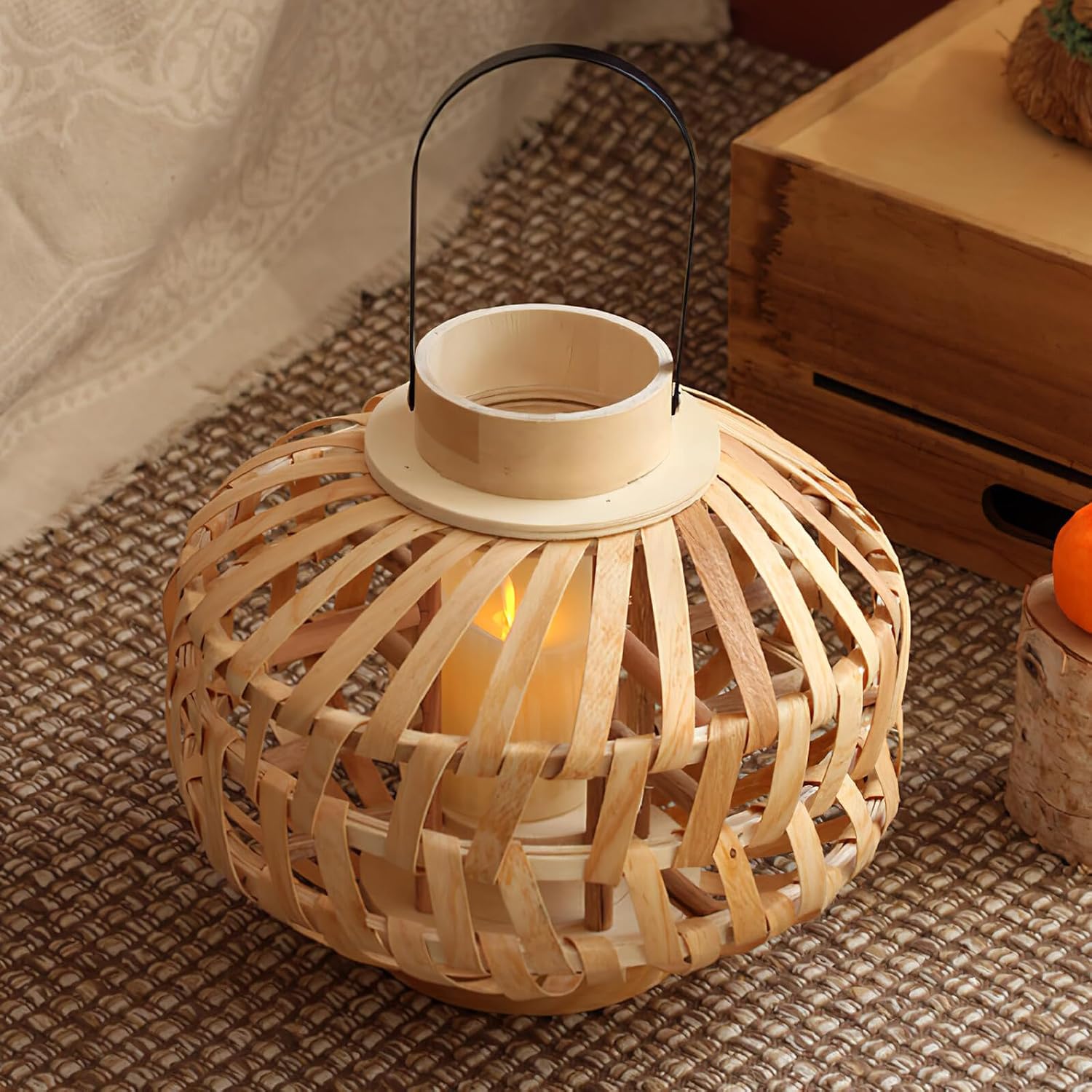Package Include 1 x woven candle lantern Characteristics -Color:Beige -Product Info:Candlestick decorations -Note: without Candle Retro Woven Lantern. -Size:25.00X25.00X20.00cm/9.82X9.82X7.86in -Material: Wood -Designed with an elegant look, and , this product is not only a candlestick, but also a home decoration lantern for living room. -This rustic candleholder can match well many home decorative styles as you like, because this candleholder is delicate candlestiick holders. -This candleholder is designed into a hanging design, which makes it more elegant and perfect for party decorating use romantic candlestick holders. -This retro candle holder is a perfect housewarming gift for your friends and co-workers retro candlestick. -Made with high grade material, this candleholder is and practical for use.Goods Informationcandles holders Are you looking for a creative and delicate candleholder? Do you want to decorate your home very well? Then this candlestick will be a nice choice.rustic farmhouse lantern It would be a great choice for you.Woven Tabletop Lantern It will add bright and beauty to your living room, bedroom, dinning room, etc
