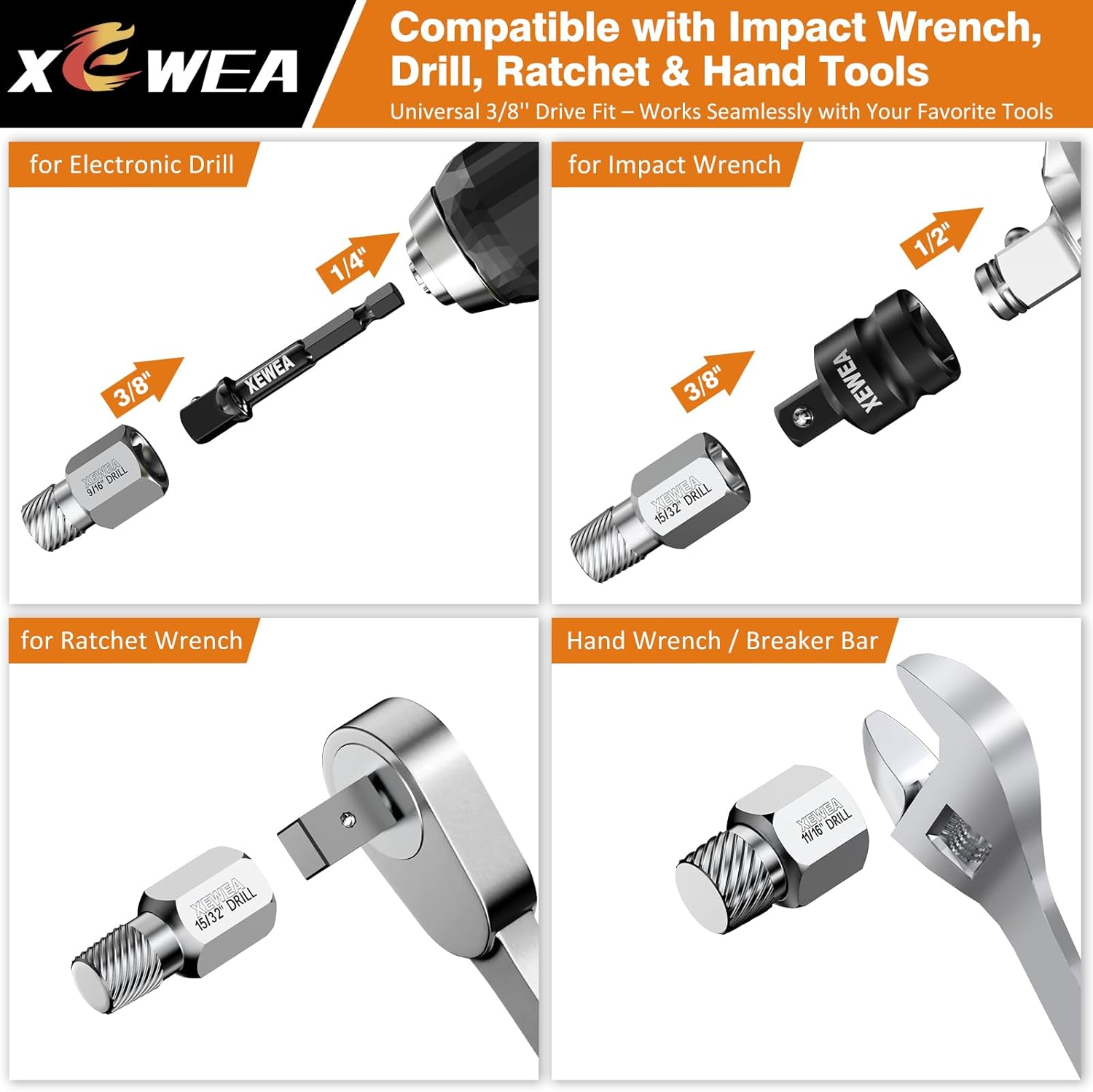 Made of premium CR-MO steel, every extractor resists wear, impact, and rust. Adapters and extension bars make this bundle compatible with drills, impact wrenches, and hand tools — perfect for automotive, industrial, and home repair use. Remove Any Bolt, Any Time – Durable, Efficient, and Ready to Work."