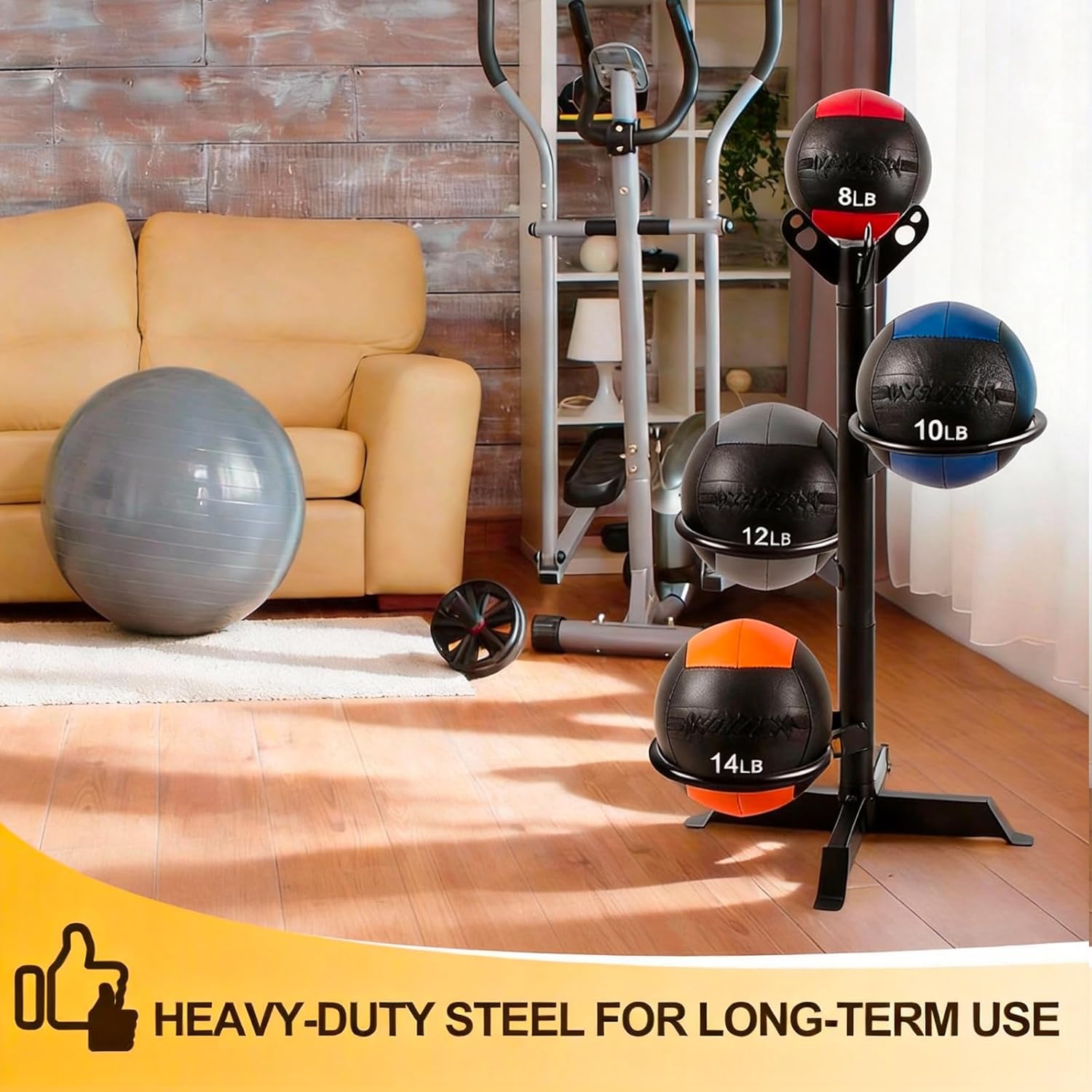 Features: With a space-saving base of just 21.5" x 21.5", this vertical rack holds up to 4 medicine balls securely within its 32.7" height. It transforms minimal floor or corner space into organized, high-capacity storage, ideal for any area. Specifications: Material: heavy steel Color: black Size: about 21.5”L x 21.5”W x 32.7”H Package includes: 1 x Medicine Ball Stand with 360° Pivoting Rings Notes: Manual measurement, please allow slight errors on size. The color may exist a slight difference due to different screen displays